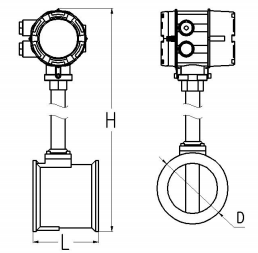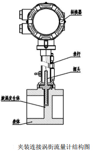 法蘭卡裝型渦街流量計的基本結構主要是由表體、探頭、旋渦發(fā)生體、表桿和轉換器等組成。