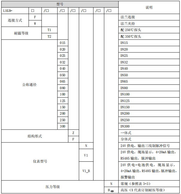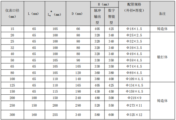 | 儀表口徑(mm) | 15、20、25、32、40、50、65、80、100、125、150、200、250、300 |