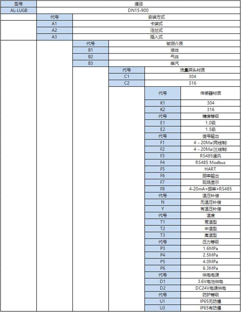 注:DN300以上口徑推薦使用插入式渦街流量計,可定制。