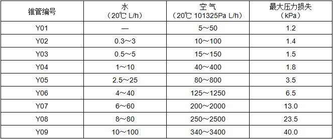 ●測量范圍:水(20℃)0.3~100L/h;空氣(20℃ 101325Pa)5~3400L/h;