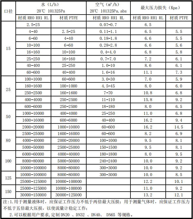 口徑的 5倍,下游直管段最小長度為 250mm。