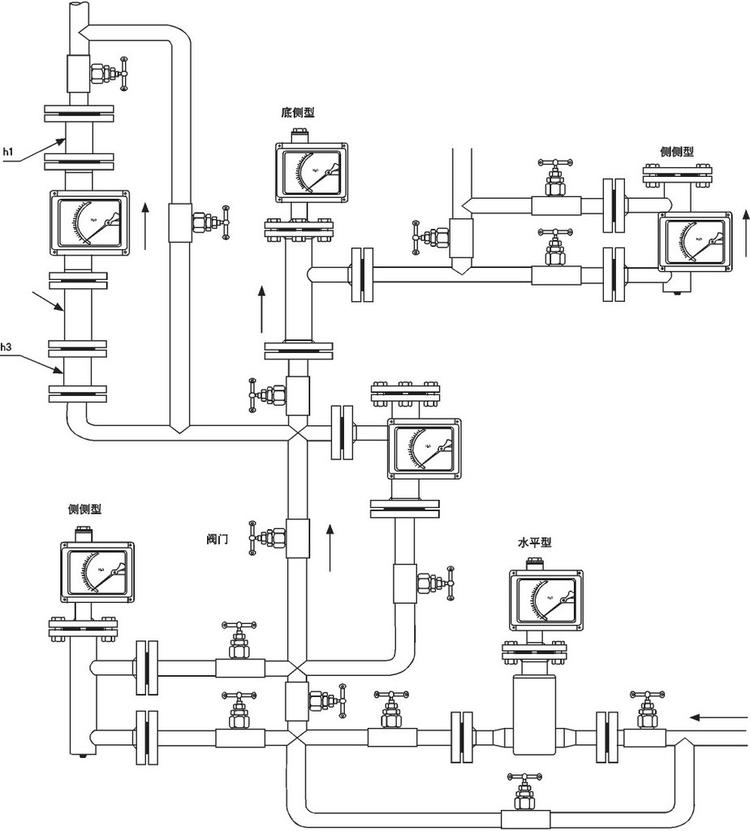 各種安裝形式的流量計安裝方式可參考下面的示意圖: