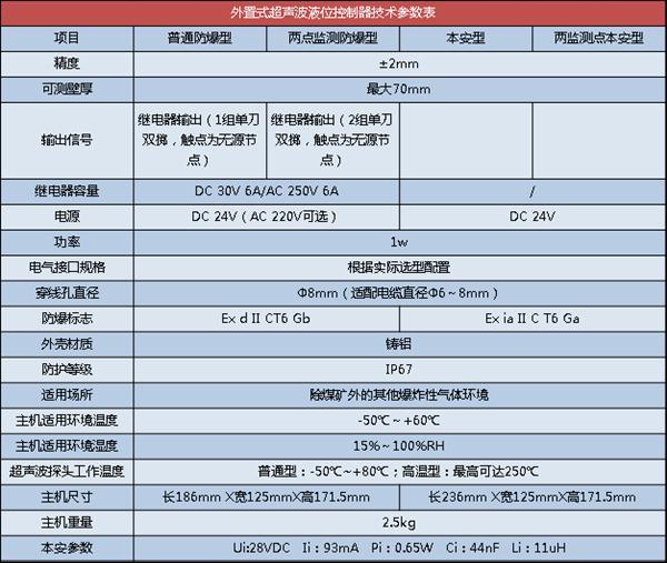 /??product introduction外貼式超聲波液位開關(guān)簡稱液位控制器,是一種新型液位測量報警裝置,主要用于測量儲罐液面,實現(xiàn)上下限報警(高低位報警)或者檢測管道中是否有液體存在,儲罐材質(zhì)可以是各類金屬,非金屬或者不發(fā)泡塑料,壁厚可達70MM,這類技術(shù)不受介質(zhì)密度,介質(zhì)常數(shù),導電性,反射系數(shù),壓力,溫度,沉淀等因素影響,所以適用于醫(yī)藥,石油,化工,電力,食品等行業(yè)的各類液體液位工程控制,對于有毒的,強腐蝕性的,危險品液位的檢測是最理想的選擇。