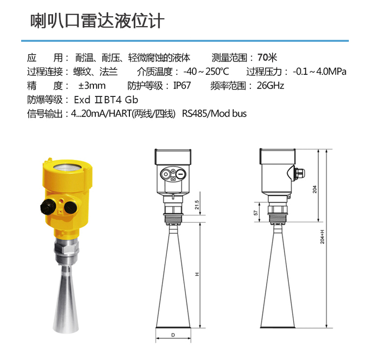 B 喇叭天線Φ76mm/不銹鋼304 C 喇叭天線Φ96mm/不銹鋼304 D 喇叭天線Φ123mm/不銹鋼304 |