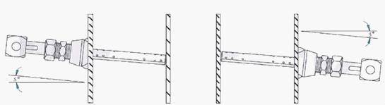 對(duì)于垂直管道,理論上可以在360度內(nèi)安裝。對(duì)于含有大量水分的濕氣體,推薦傳感器安裝時(shí)向上傾斜5度,如左圖所示。