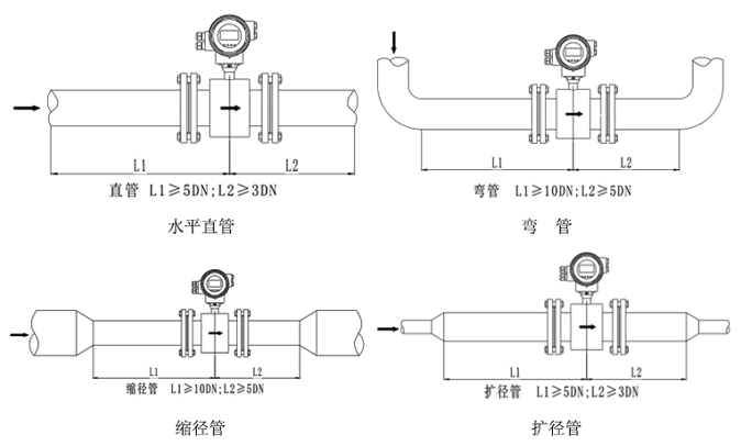 1) 測量混合相流體時,選擇不會引起相分離的場所;測量雙組分液體時,避免裝在混合尚未均勻的下游;測量化學反應管道時,要裝在反應充分完成段的下游;