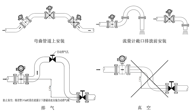 2、避免流量計安裝在溫度變化很大或受到設備高溫輻射的場所;