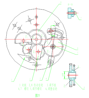 松動螺釘7,卸下調(diào)節(jié)螺釘5,取出調(diào)節(jié)齒輪6;