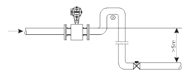 管路結(jié)構(gòu)應(yīng)保證電磁流量計(jì)測(cè)量管中始終充滿液體。