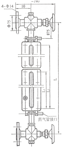 玻璃板液位計在上下閥上都裝有M27×1.5或ZG3/4"的螺紋接頭,通過法蘭與容器連接構(gòu)成連通器,透過玻璃板可直接讀得容器內(nèi)液位的高度。