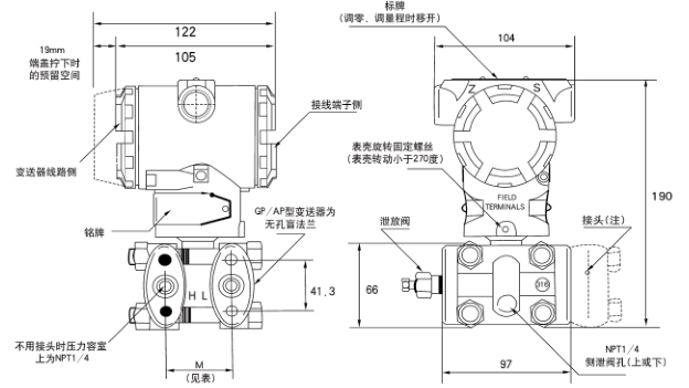 差壓變送器用于測(cè)量液體、氣體和蒸汽的液位、密度和壓力,然后將其轉(zhuǎn)變成4~20mA的電流信號(hào)輸出。也可以通過HART475手操器或HART375手操器相互通訊,通過它們進(jìn)行設(shè)定和監(jiān)控等。