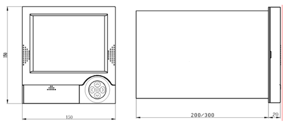 彩屏無紙記錄儀顯示部分采用的是TFT真彩LCD,如果從極其偏的角度看上去就會難以看清顯示,所以請盡量安裝在觀察者能正面觀看的地方。