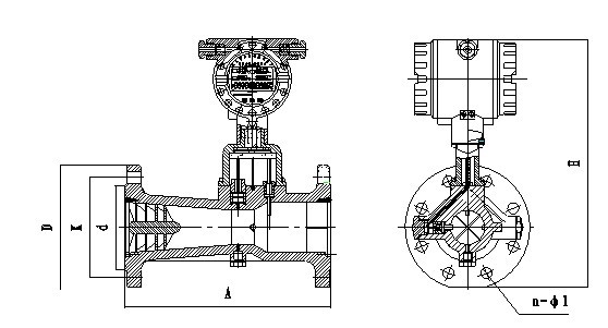 旋進(jìn)旋渦氣體流量計(jì)外形尺寸如圖所示,旋進(jìn)旋渦氣體流量計(jì)采用法蘭連接方式,法蘭尺寸執(zhí)行GB/T9112~9113-2000標(biāo)準(zhǔn)。