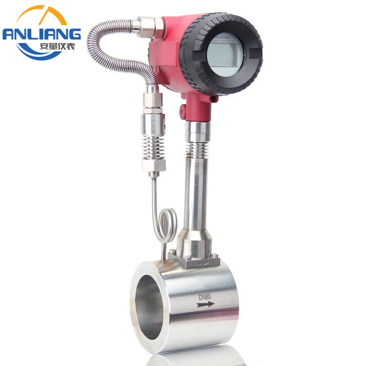 天然氣流量計一般選擇智能式渦街流量計。具有測量精度高、量程寬、功耗低、安裝方便、操作簡單、壓力損失小等優(yōu)點,可測量工況體積流量或標準體積流量(一體化智能溫度、壓力補償),根據(jù)用戶需要,可附帶脈沖或4~20mADC 電流輸出功能。是目前比較理想的天然氣計量儀表。